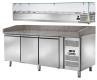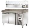 From the Italian brand AMITEK, BLU series, model AK2602TN + AK15433. Made of stainless steel, inside and out. Ventilated cooling with air recirculation. Built-in motor. Digital thermostat for temperature control and defrosting. Automatic condensation evaporation. 60mm insulation thickness. Interior with rounded edges for easy cleaning. Adjustable stainless steel feet. Stainless steel back. On top, a tabletop chilled display with a capacity of 7xGN 1/4. Capacity: 210 liters. Temperature range: -2C to +8C. Dimensions: 1510x800x1000+435 mm. Power: 350 kW. (dough pans not i