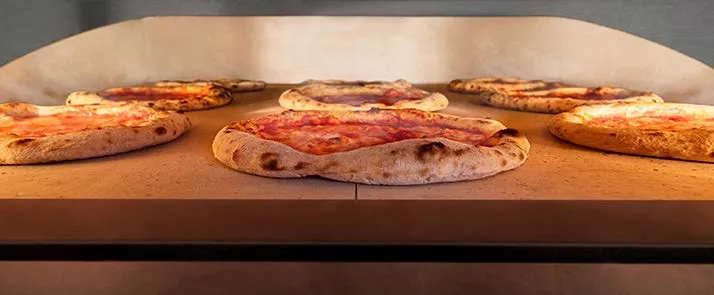 Entirely made of refractory bricks, ideal for traditional pizza: perfect heat distribution and enhancement of the most delicate toppings.