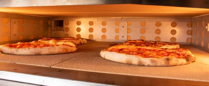 The chamber with patented technologies made of “biscotto” surface, ideal for contemporary Neapolitan style pizza. It reaches 500°C baking in 2’ 30’’. Productivity increased by 25%.