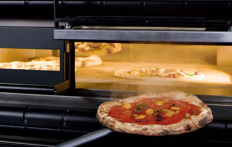 For pizza, the baking time is automatically adjusted to suit the product and the amount of heat applied. The baking process is managed by the algorithm: once complete, an acoustic signal ndicates the right moment to take the product out of the oven.