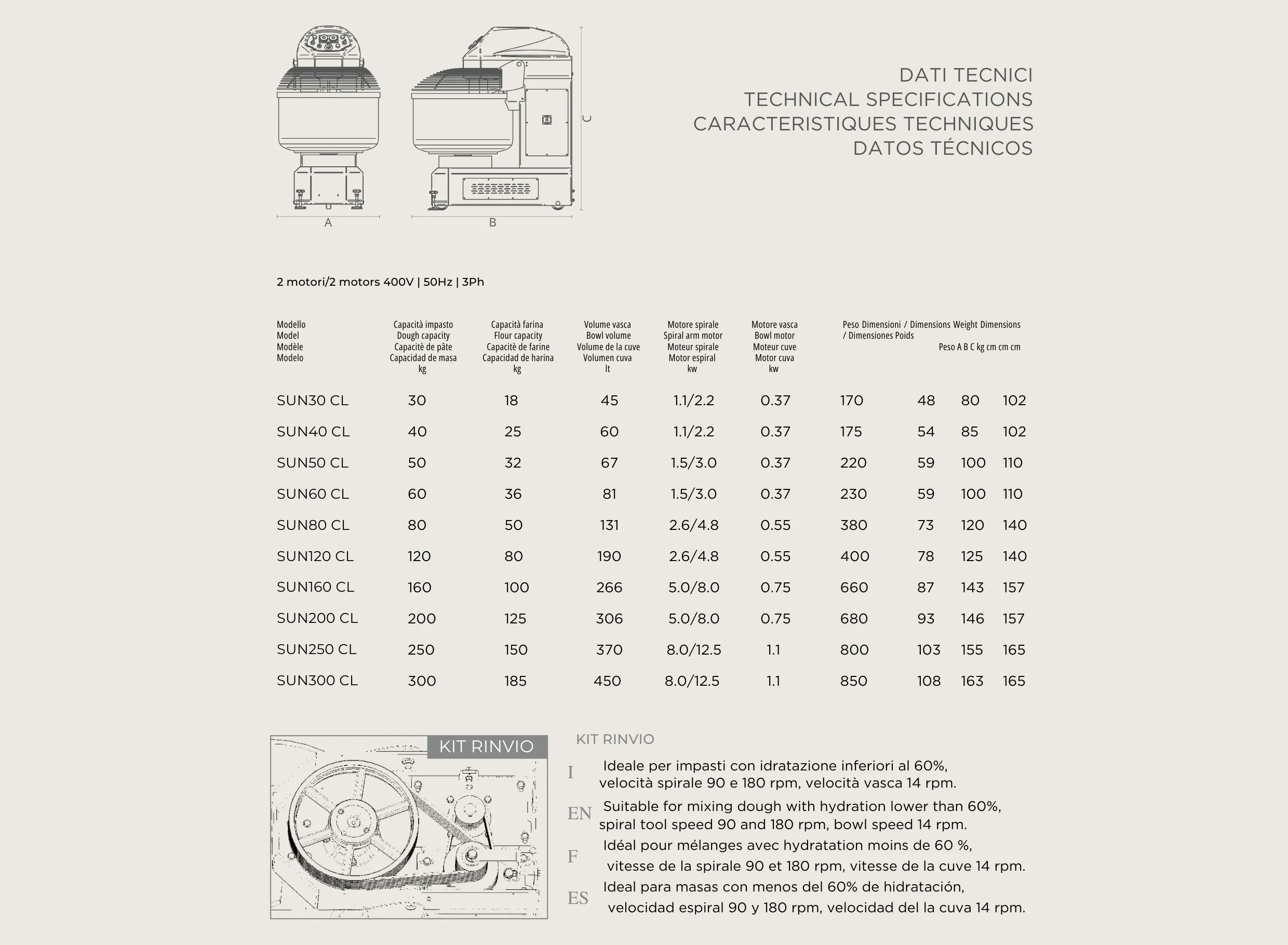 – 400V 50Hz 3ph.