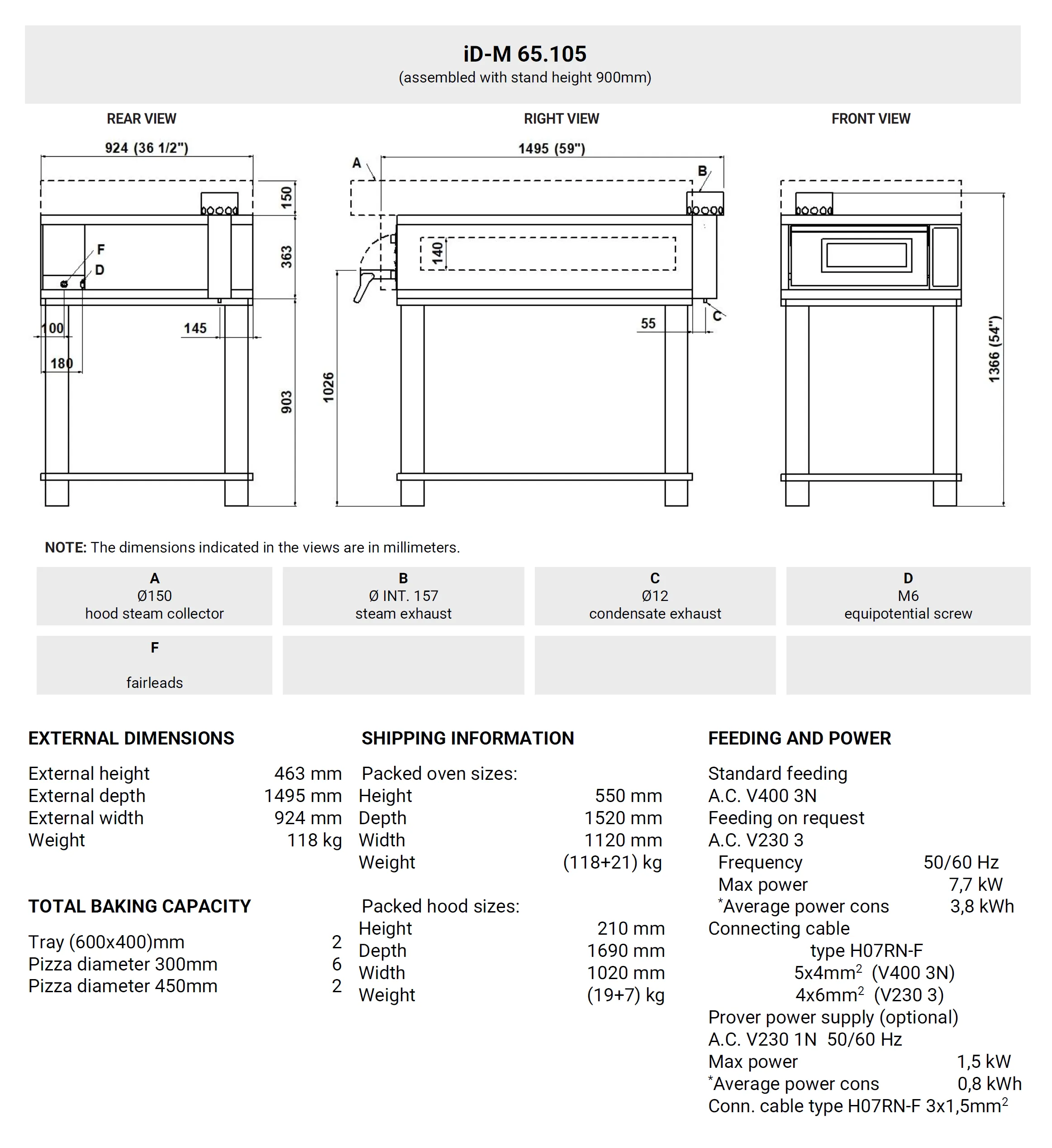 iDeck consists of one or two baking chambers and an optional prover or stand. The oven’s baking surface is made of refractory material, providing the perfect heat distribution over the whole surface. This oven is particularly suitable for direct or indirect pizza baking. Temperature management is electronic, power control of ceiling and floor is independent. The oven door is hinged at the bottom, with a tempered glass window to check the product during baking. The stand consists of a painted metal structure, while the prover is a stainless steel cabinet equipped with a heating thermostat. The prover can reach the maximum temperature of 65°C(149°F), whereas the maximum temperature of the baking chamber is 450°C (842°F).FUNCTIONING