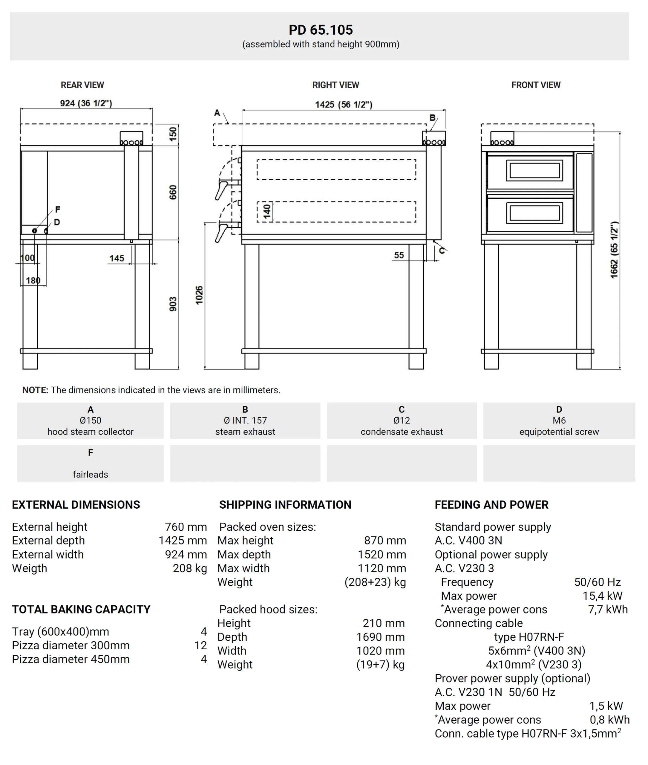 iDeck consists of one or two baking chambers and an optional prover or stand. The oven’s baking surface is made of refractory material, providing the perfect heat distribution over the whole surface. This oven is particularly suitable for direct or indirect pizza baking. Temperature adjustment is electro-mechanical , with independent control of the ceiling and floor heating elements. The oven door is hinged at the bottom, with a tempered glass window to check the product during baking. The stand consists of a painted metal structure, while the prover is a stainless steel cabinet equipped with a heating thermostat. The prover can reach the maximum temperature of 65°C(149°F), whereas the maximum temperature of the baking chamber is 450°C (842°F).FUNCTIONING