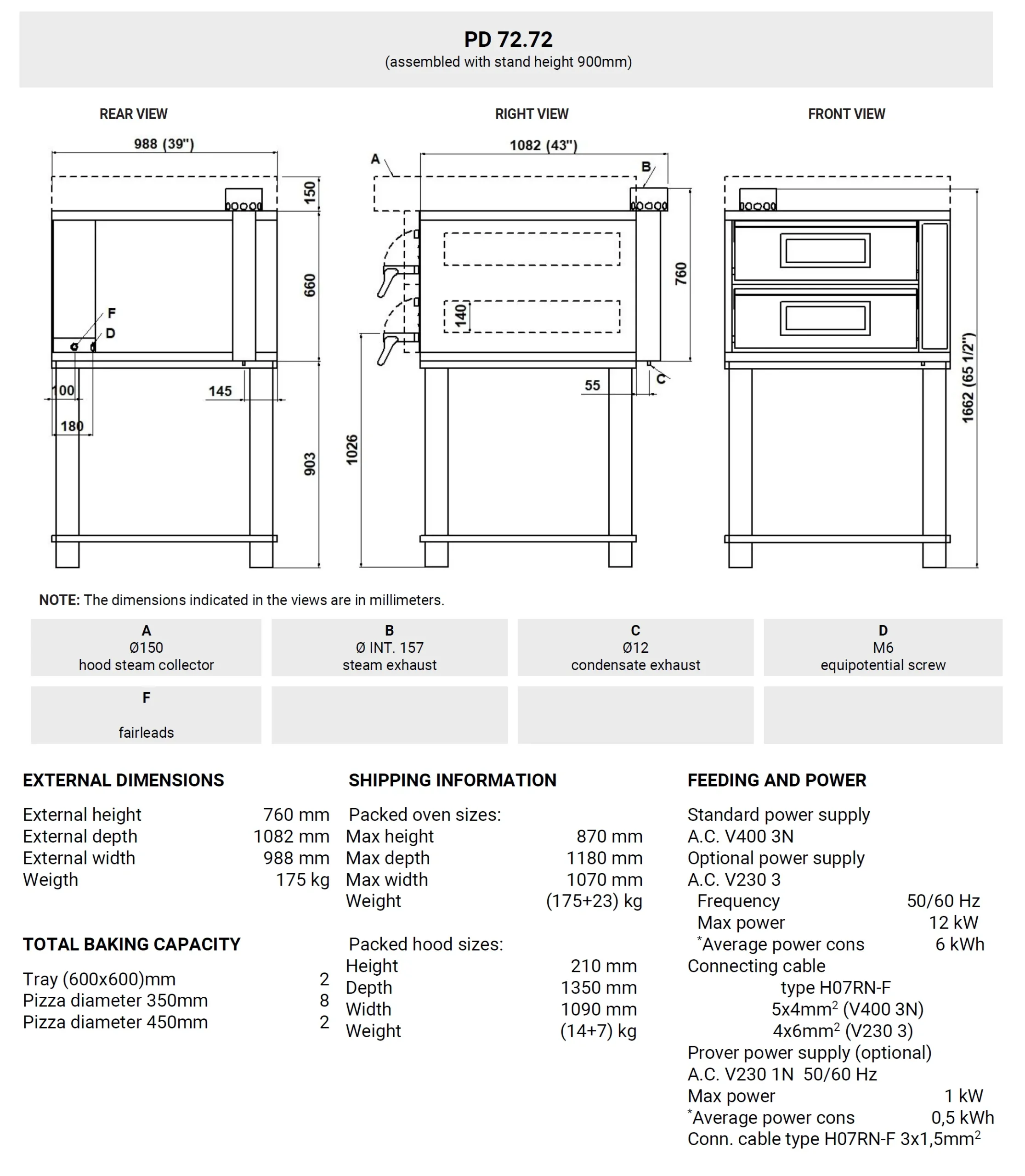 iDeck consists of one or two baking chambers and an optional prover or stand. The oven’s baking surface is made of refractory material, providing the perfect heat distribution over the whole surface. This oven is particularly suitable for direct or indirect pizza baking. Temperature adjustment is electro-mechanical , with independent control of the ceiling and floor heating elements. The oven door is hinged at the bottom, with a tempered glass window to check the product during baking. The stand consists of a painted metal structure, while the prover is a stainless steel cabinet equipped with a heating thermostat. The prover can reach the maximum temperature of 65°C(149°F), whereas the maximum temperature of the baking chamber is 450°C (842°F).FUNCTIONING
