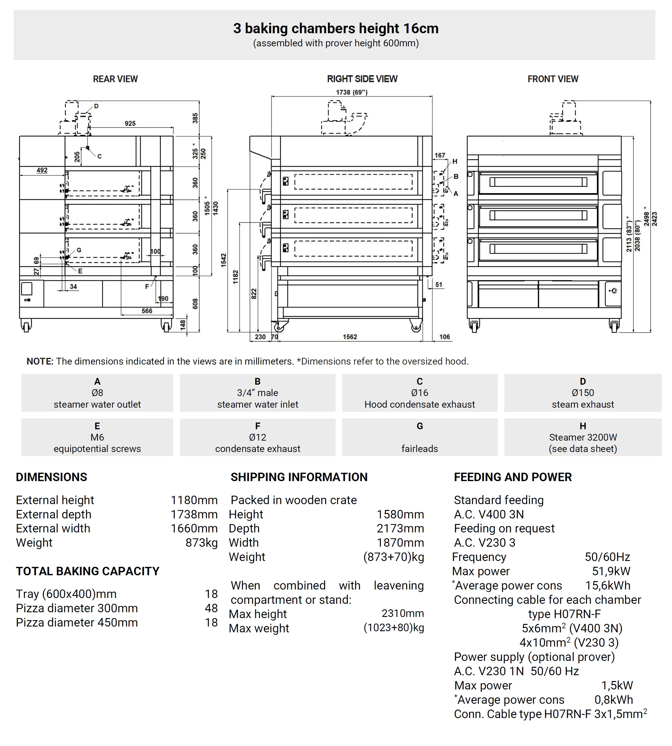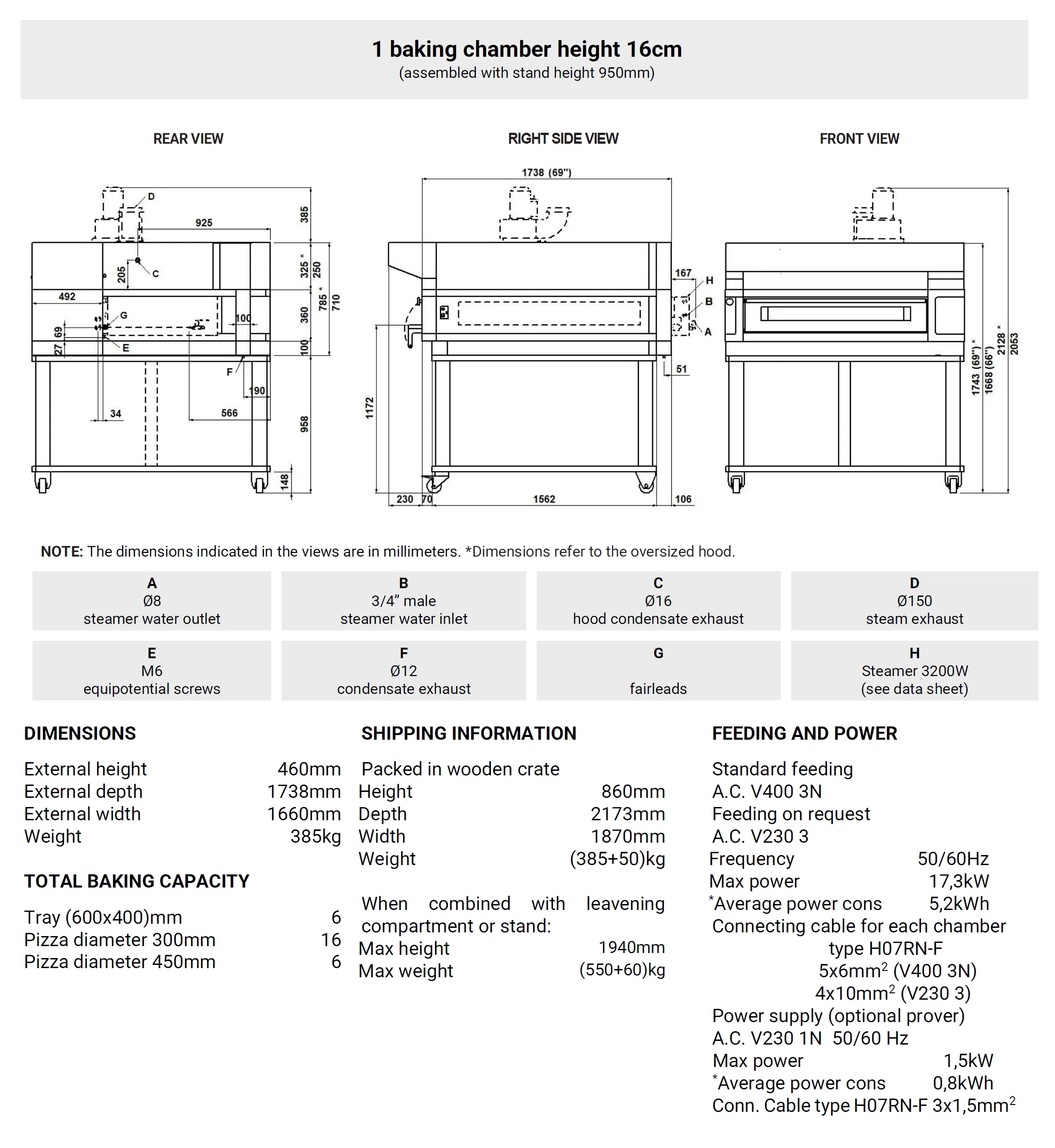• Aluminated steel top and side structure or refractory (stonebake)