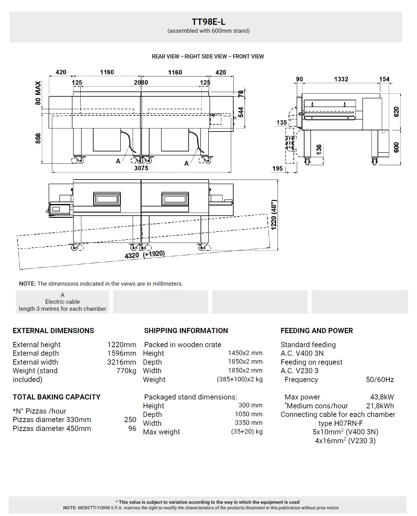 TT98E-L – TT98E-XL are electric modular conveyor ovens for the highest productivity. Composed of respectively two and three aligned baking chambers.